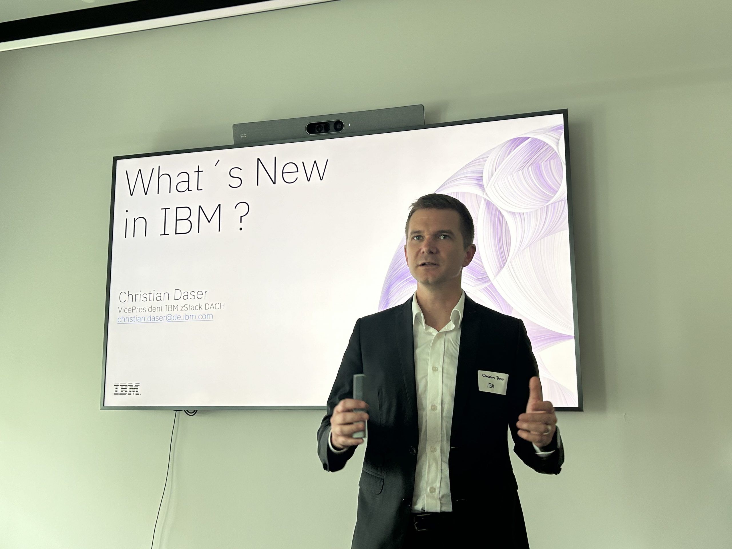 Christian Daser (IBM) eröffnete mit einem Überblick zu „What’s new in IBM“, gefolgt von einem gemeinsamen Technologie-Update von Atruvia & IBM zur z17-Plattform.